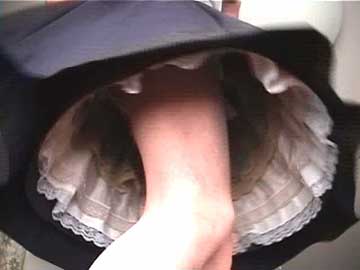| いくら膝丈だからって言っても、安心はしていられないわ。 こんな風に見られると、スカートの下に重ねているペチコート2枚が見えちゃうだけじゃないのね。 ストッキングの上の太ももまで見えてしまって...恥ずかしいわ。 |