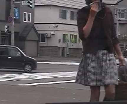 彼女はスカート姿の私を不審に思ったようです。後で振り返って見られちゃうんです。左折の車も待っています。