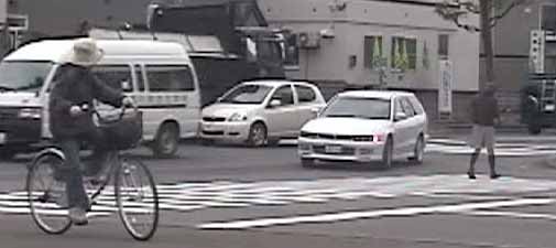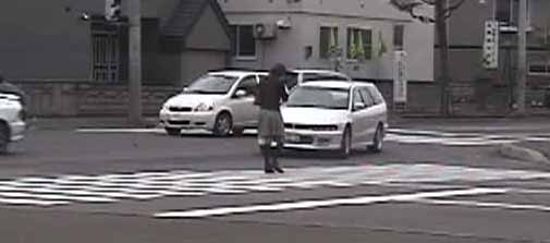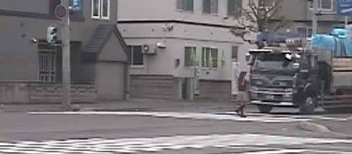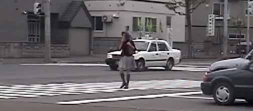 純子が横断歩道を渡るのを見ています。でも、この時にはそんなことは分かりませんでした。危険がいっぱい、ね。