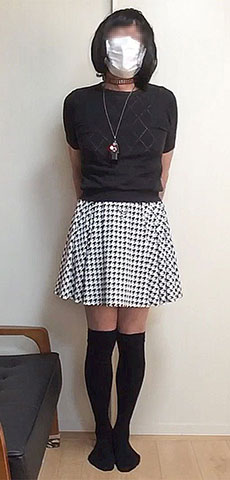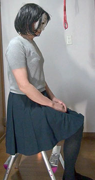 無理やりスカートを替えさせられた純子はペチコートも替えさせられました。そして外出なので仮面の代わりにマスク着用で素顔を隠すことに...