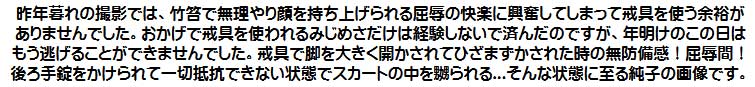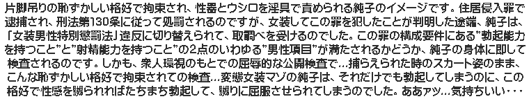 純子のイメージ: スカート姿で緊縛入牢刑を執行される女子大生大里麻衣の気分・・・