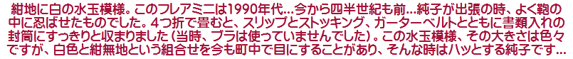 純子がうれしく思うのは、紺無地のフレアースカートから覗く白いペチコートの裾が、レースではなくメロウ仕上げになっていること...これって、純子のスタイルと同じ!!