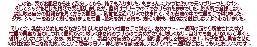 お風呂に入る前の数分...純子は一人になれるので、こんな格好をして自分を苛めています。お風呂では全裸で、乳首責め具と股縄で苛められながら手淫をします..
