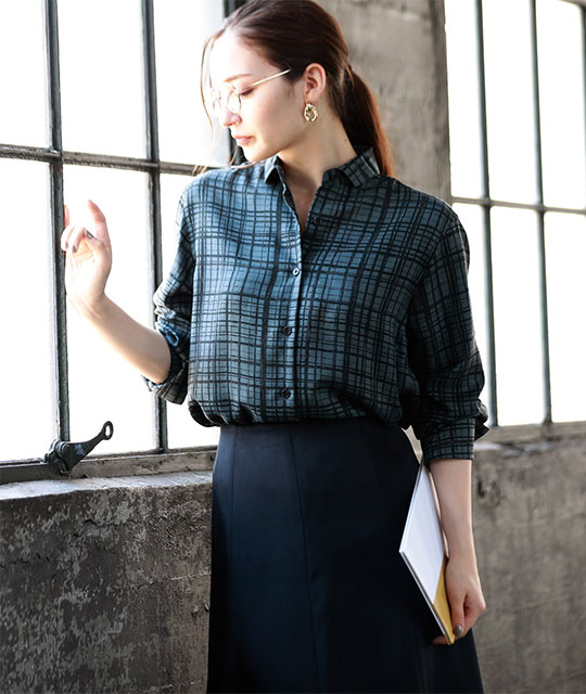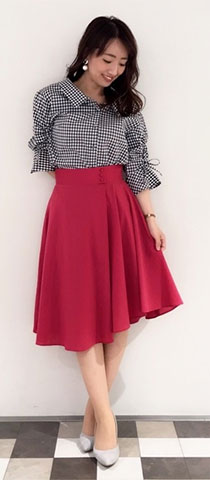 スカートと、同じ生地のボウタイ、白ブラウスと黒無地ブレザーで構成されるフォーマルスーツ(ナカノヒロミチ)からスカートだけ抜き出しました。