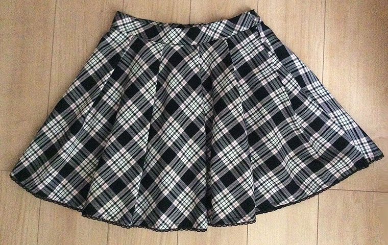 この膝丈フレアスカートは生地も厚く、裏地もしっかり付いていて秋冬用です。