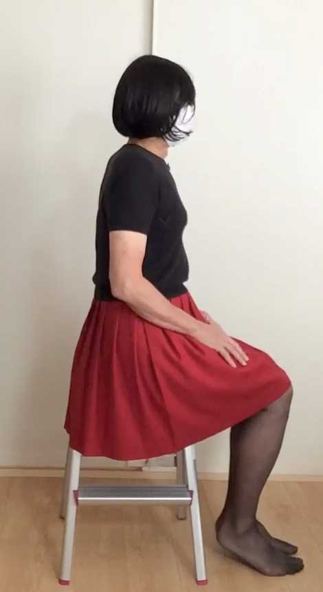 長いスカートを椅子の背にかけて座ります。柔らかい生地のスカートが描くエレガントな曲線がとっても女性的...でも、その中では?...誰も知らない背徳的な感覚!