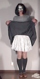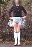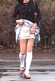 初日は、純子としてははじめてとなる赤いフレアーミニを着用して夜のひと時を過ごしました。 ![]() 18日(火)以降は、純子のために新たにゲットした紺色のフレアーミニスカートで過ごしています。 ![]() もう4月...でもこの冬の記憶は...雪の日のスカート生活は忘れたくない...いつまでも生々しく覚えていたい... ![]() ![]() この新しい紺色のフレアーミニスカートを穿いて、はじめて外の通りを歩いてみました。もちろん 冷たい空気がスカートの中に入ってきます。しかも、タイツではなく太ももまでのストッキングだから... しかも、下着が...だから、スカートの中がスウスウして...でも、寒くはないの。気持ちが燃えています。 からだが高ぶっています。撮影は早々に切り上げて部屋に戻りました。自分のスカート姿を鏡に映して... ![]() ショッピングセンター屋上駐車場です。吹雪の日に、フレアーミニスカートなんてと思われるかもしれませんが、決して奇矯な服装ではありません。 薄いストッキングだったら奇異の目で見られるでしょうが、厚手のストッキングです。この格好でお店に入り、レジ横の荷物台に行って、段ボール箱を 物色して一つを車まで持ってきました。どこでもそうだと思いますが、野菜・果物や飲料などの入っていたダンボールを自由に持ち出せるように置いて あるのです。たくさんの男女のお客や店員がいましたが、怪しまれることはありませんでした。スカートが風に乱れるシーンは、やっぱり動画が必要です。 日曜日にはJRローカル線の無人駅に行ってきました。メルヘンチックな風景でしょう?新雪だったからとても綺麗! ![]() ここは今年の夏にも、そして秋にも、訪れた所...夏にはシフォンの、秋にはギンガムのプリーツミニスカートで... 最初はジャンバーコートを着て撮影していましたけど、スカートの線をきれいに出したくて、とうとう脱いでしまいました。 ![]() クリスマスイブやその前日などは、終日、このスカートで過ごし、外出もしました。家事をする時も、 食事をする時も、ちょっと立ち上がって動くと、目の下にはいつもフレアスカートが優雅に揺れています。 座れば座ったで、目の下には紺色のスカートの裾から太ももが、その時のストッキングの色で露出します。 ![]() 純子は、もう頭がどうかなっちゃうかもしれません。スカート姿で暮らす...興奮で気が変になりそう... この誘惑にいつまで耐えられるかしら...いえ、誘惑ということなら、もうすでに初日から屈服しています。 問題は、ああ...純子の...純子の...からだ...が、いつまで耐えられるかしら...枯れ果てて... [2012.12.26] 純子のスカート生活は今、中断しています。でも、生活とは言えないまでも、多少の無理をして スカート姿で過ごせる時間を確保しました。紺のフレアーミニ...すっかり気に入ってしまいました。 ![]() 正月の3日午後から、またスカート生活に戻れるようです。年末年始の6日間をスカート姿で 過ごせると期待していたので、とてもがっかりしていますが、今日もスカート姿で午後のひと時を 約6時間にわたって過ごすことができたし、かえって「タメ」ができてよかったかも...待ち遠しい! [2012.12.30] 昨日からスカート生活を再開しました。着用したのは紺のフレアーミニ...突然の中断で 欲求不満が溜まっていたのですが、スカート姿で近くの駅に行って、エレベータや階段を歩き 回り、たくさんの人とすれ違い、追い越し、追い越され、また途中の道でも横断歩道や信号で スカート姿を人前に晒すことができて、不満は一気に解消されました。今日も朝からスカートです。 ![]() でも...昨日も今日も朝から終日スカート姿で妄想に耽っているとだんだんつらくもなってきます。 妄想が行き着くところまで行ってしまうと、それまで取りつかれていた物の怪がおちたようになって... ほんとは妄想なんか無視して平常心で暮らせればいいんだけど...でもスカート生活を続けます... ![]() スカート姿で暮らしていると、いつも視界の下に自分のスカートが揺れていたり広がっていたり... 自分が自分でなくなってしまって、凶暴な気持ちと被虐の気持ちが同時に心の中に広がって... 昨日と今日だけでも、純子のからだは枯れ果ててしまいました...もっと若かったらって思います... [2013.01.03] ![]() 3週間ほど続いた純子のスカート生活も、今日でいったん中断です。ずっとスカートの感触を楽しんできたのに、 それでもなお、まだ未練がましく、最後の日の午前もスカート姿で洗濯や掃除・撮影をこなしました。前夜、駅で 見かけた女性が黒いコートに黒タイツ、黒ブーツに赤いミニスカートを格好よくコーデしていたのを純子も真似て... ![]() 純子のスカート生活第三次日程は明日の夜から...どのスカートを穿こうかしら?この撮影はペチコート1枚 で去年の暮れのものだけど、明日はちゃんとスカートを穿いていたい...昨夜、自分自身ではないけどその中で 果てたバイアスチェックのフレアーミニにしようかしら?