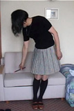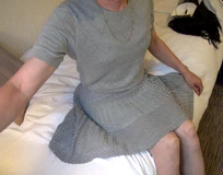 前の夜泊まったホテルでは、翌日のきつい調教を想って、とても興奮しました。調教の時と同じスカート姿で様々な被虐の妄想に 耽っていると、知らない間にスカートの中が濡れていて...それを知ると、また興奮してきて...ああ、明日の夜はこのスカート姿で 辱められるんだわ...きっとまた、立たされたままスカートを捲り上げられて性器をいたぶられるんだわ...前回のkaorinさまの責めを 思い出して、純子はますます高ぶってしまいました。しかも前夜だから射精は許されない...純子の生き地獄でした。ああ、早く許して! 調教の日の朝も翌朝も、純子はスリップ姿で早くに目覚めてしまい、延々とスカート姿で被虐の夢を追い続けるのでした。朝のスカートは、 2回とも、上右の幅広のプリーツミニ...スカートの下にはスリップ1枚で、純子には珍しく、3日通して白いストッキングをガーターで吊りました。 |