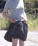 スカート姿に着替えて、その上から男姿で車を運転し、町を出たところでスカート姿に脱皮し、ウィッグも着けて、出発。 目的地まで途中、寄り道をしながら6時間ほどのドライブ...昼食はあらかじめ男姿でコンビニで買ったお弁当を車内で 食べました。もちろんスカート姿です。途中のJRローカル線無人駅での撮影、山道で車から出ての”散歩”、そして途中の町 では、昨年宿泊したホテルの前で撮影しながらの旅...明るい町中をスカート姿で歩けるのは、遠く離れた町だからこそ... そして、ホテルについてからは、それまでの刺激的な体験を思い出しながら、被虐の情念が暗い心の奥底から滾々と湧き出し、 純子は破廉恥な自慰行為や自虐・自辱行為に耽るのでした。こんな薄いスカートで一日過ごしたんだわ...そう思うと... |