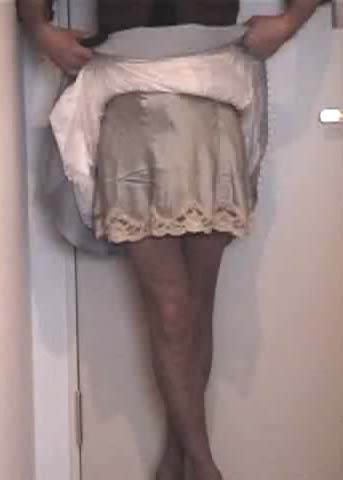 スカートから最も奥のフレアーミニスリップ。純子の体を直接守る役割。