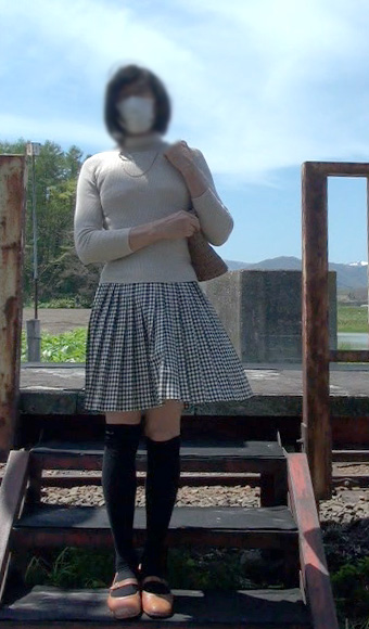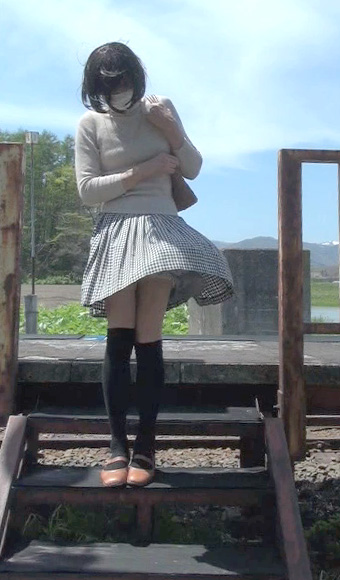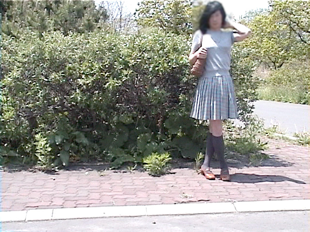 このプリーツミニスカート姿で風に辱められる純子の映像は別館にも展示いたします。どうぞお越し下さい。