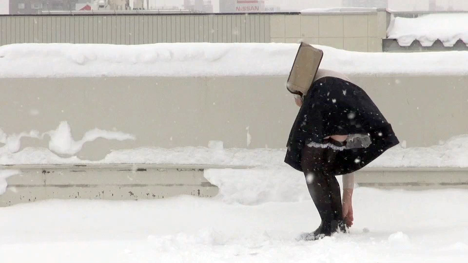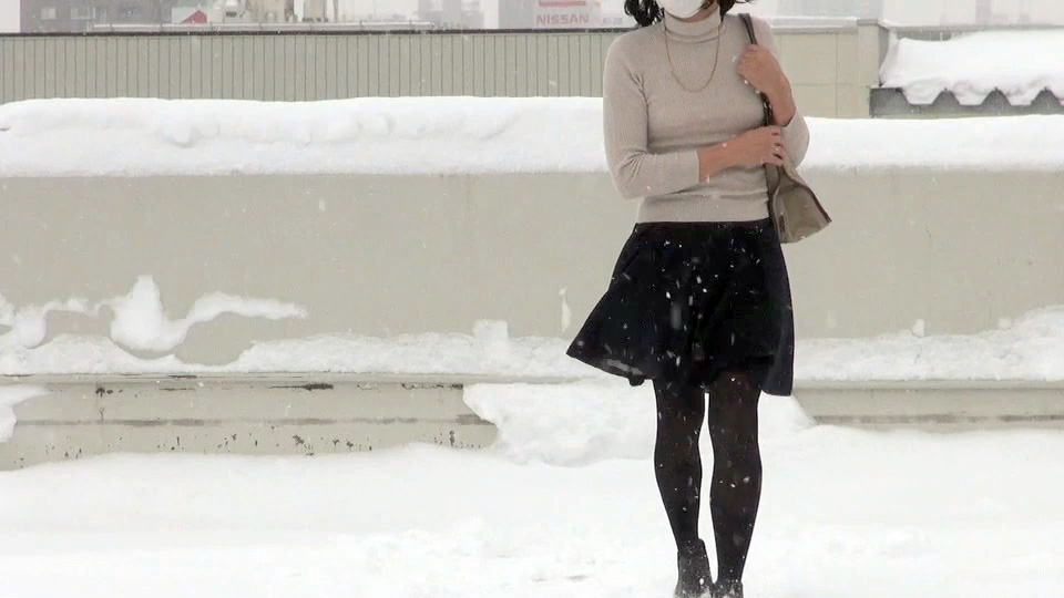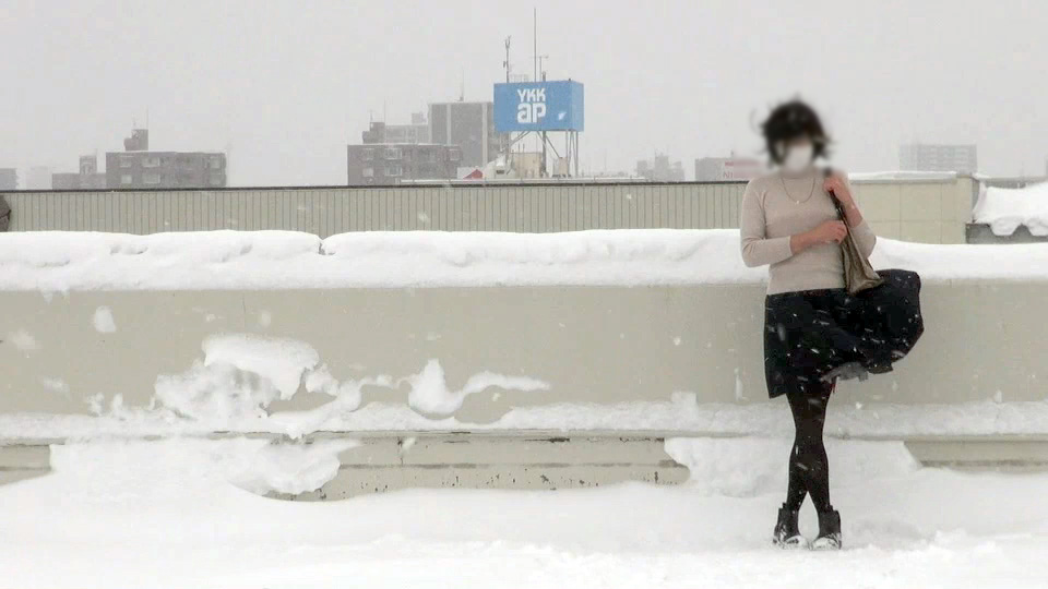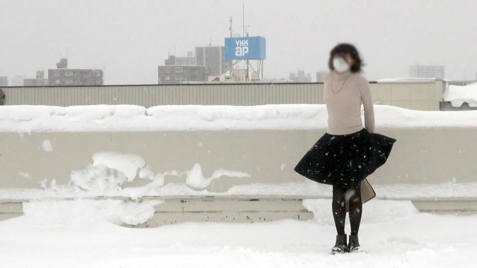 このプリーツミニスカート姿で風に辱められる純子の映像は