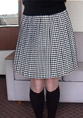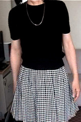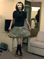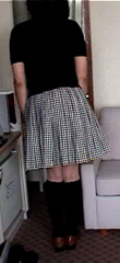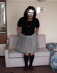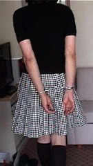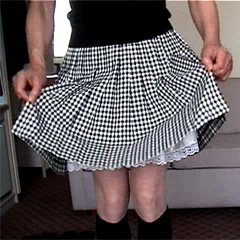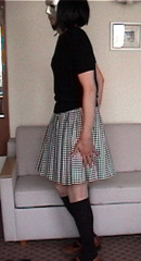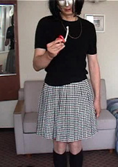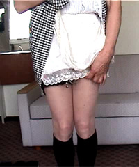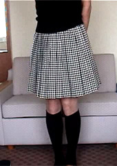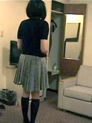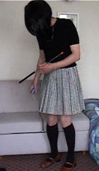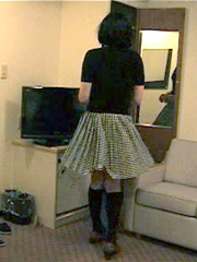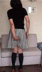| 6月だからまだ明るい夕方のひと時、久しぶりにこのプリーツミニスカートに着替えた純子はとても興奮していました。 照明条件も夜と違って格段にいいので、スカートのギンガムチェックが克明に写ります。白いペチコートのレースも... 自分でも、スカートの中の赤と黒の靴下留めがとてもエロチックに思えて、鏡を見るたびに辱めたいのか辱められたいのか 頭の中が混乱していました。それに、新しく入手したバイブレーター...青いリングが性器亀頭のくびれに嵌められています。 手にしているのはそのコントローラー...これはとどめを刺すためではなく焦らしていたぶるためのもの。ジジジ・・・って苛めるの... |
