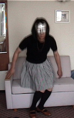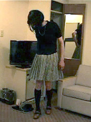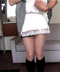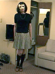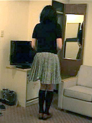 このスカートは、2009年7月以来、ウエストの関係で 穿けずにいました。でも、ダイエットのおかげで今回、着用 することができました!純子には特別な思い入れのある スカートなので、とても嬉しかった!懐かしかった... 下は今回新しく撮影した映像からの静止画です。 夏至の月だから夕方でも光が強く、照明条件は最高でした。 被虐的な気持ちがこみ上げて来て、とても高ぶっています。 でも、ホテルだから責め具も限られているのでますます... [2011.08.21] |
