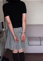 写真をクリックすると、大きくなります。 ![]() 夕方に一度射精させられ、その時と同じ服装で過ごさされた後、暗くなってから外出させられました。人前をスカート姿で歩かされて... 写真をクリックすると、大きくなります。 ![]() 外出の時の映像はありませんが、帰ってからのイメージはこちら。すっかり興奮した純子は、再度、スカートの中で淫靡な責めを受けることに... スカートの中ではもうウシロも前もバイブレータがきびしく無慈悲に純子のからだを責め続けています...ああ、また... 写真をクリックすると、大きくなります。 ![]() スカートの中で機械に迫り上げられ、追い詰められて、ついに屈服させられる純子を後ろから撮影しました... |