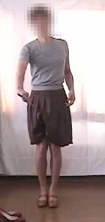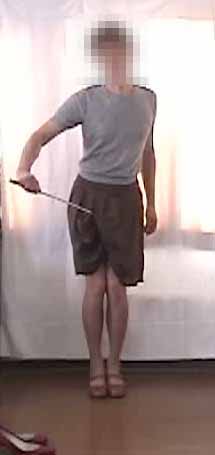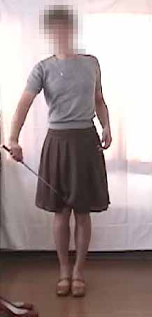 ちょうど膝小僧が隠れるくらいの膝丈スカートです。その裾に、棒の先が...あっ...膝に当たる棒の先のいやらしさ...