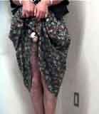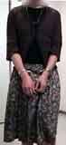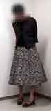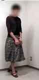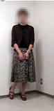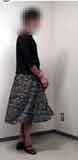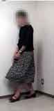 このフレアースカートは純子が着用できる中では、いちばん丈が長いスカートです。