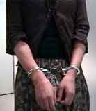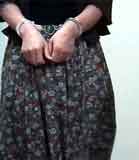 長いスカートだから、中を覗かれる心配はないのですが、手錠をかけられて連行される時は別です。