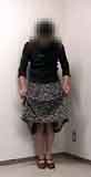 丈の長いフレアースカートなので、膝どころかふくらはぎの半分までが隠れてしまいます。