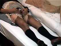 かたく閉じていた膝も、性器を責めるとだんだん緩んできて、しどけない格好で開いてしまいます。観念しているんです...