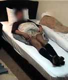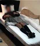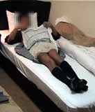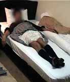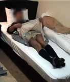 純子はプリーツミニスカート姿でベッドに横たわります。スカートの乱れを逃すまいとビデオカメラが上方から狙っています。