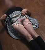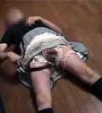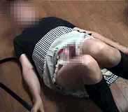 これから拷問が始まります。純子は床に横になり、スカートを捲り上げて太ももを剥き出しにするよう命令されます。