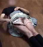 逆らうことはできないので、スカートの裾が乱れないようにスカートに手を当てて床に横になります。