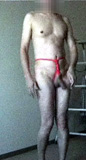 全裸の純子が赤いロープで淫靡な瘤つき股縄をキリキリときびしくかけられています...性器や肛門も...