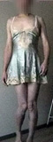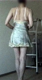 純子のフレアーミニスリップ姿です。短いスリップ...裾はほとんど股の丈で、恥部を隠す機能は、もはやありません。
