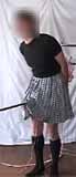 スカート姿でロープを跨がされて苛められる屈辱