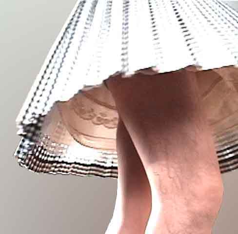 | ギンガムプリーツスカートを着けて ローアングルで撮影したものを何枚か掲載します。 撮影の日にちが違うので、ストッキングや下着にも少し違いがありますけど、 ペチコート2枚にスリップ1枚という3枚構成はいつも同じです。 照明条件がいいものでは、脛毛が見えちゃってます。 ほんとは剃っちゃえばいいんだけど、そうも行かなくて。 ごめんなさいね。でも許して.... |