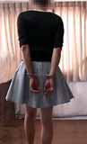 どちらかというとスカートを着けた男性にとっては、前手錠の方が後ろ手錠で拘束されるよりもつらいんです。
