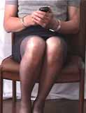 タイトスカートで座ると、お尻でぐっとスカートが引っ張られて、立っている時よりもミニになります。