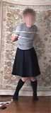 | 後ろ手に縛り上げられて、みんなが見ている前でお仕置きされる妄想。 バイブレーターで性器を責められます。機械だから容赦してくれません。 私の気持ちとは関係なく、強制的に射精させられます、スカートの中に。 その時その時でちがうスカートで辱められるの。 スリップもペチコートも精液にまみれて、冷たくなって太ももに感じます。 ああ、惨めな気持ち... 2段目の写真は射精中です。 立ったまま後ろ手緊縛の射精−−−脚の表情がつらそう... 1段目はバイブレータのスイッチが入って、 だんだんせりあがって行く途中の撮影。 |