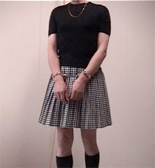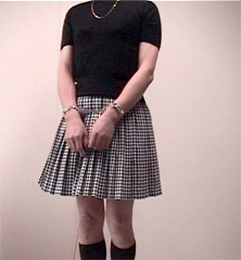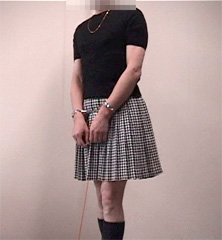 ギンガムチェックのプリーツミニスカートを着けて、手錠をかけられた純子... 生け捕りにされ、拷問室に連れ込まれたた女スパイの妄想に耽っています... きっと厳しい拷問にかけられるんだわ、このスカートでさんざん辱められるのね... せっかくきちんとしたこのスカートが、無残に捲り上げられて...ああ...きついわ... 妄想が発展するとともにスカートの中の純子のからだがつらくなってくるんです...ウッ...