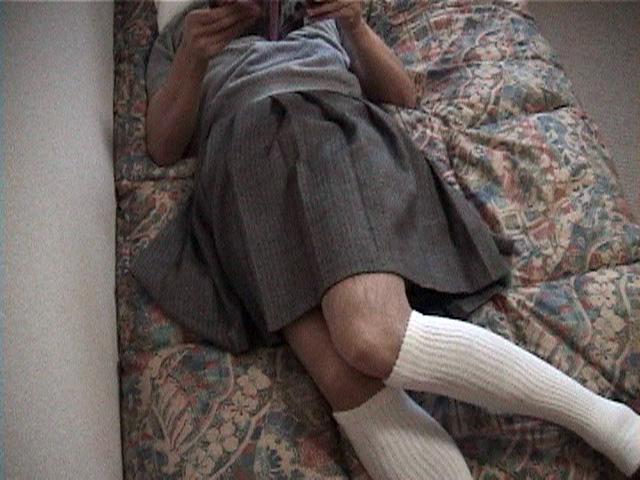 あるいはスカート姿で雑誌やビデオを見ながら、