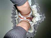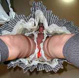 純子の剥き出しの性器です。 細紐で口割り縛りされて、 スカートの中でこんなふうに、 吊り上げられているの... だから、歩くとすごいわ... 敏感な部分が擦れるの... とてもつらい... |