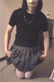 白いハイソックスにグレー無地のプリーツスカートを着けた純子は、性奴隷として跪かされています。