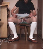 座るといっても、膝を大きく割って、脚を左右に開くように命令されました。これも屈辱度が高い姿勢です...