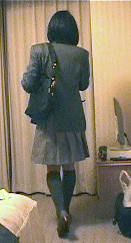 夜の町に外出して来た格好で撮影される純子
