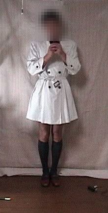 スカート姿をコートで隠した純子です。できるだけ女性っぽい仕草や姿態をと、心がけています。