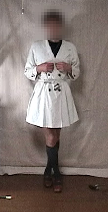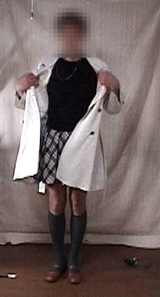 コートを脱いでスカート姿を見ていただく時となりました。恥ずかしい短いスカート...