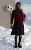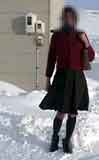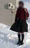 今年は雪が多くて、山沿いではこんな状態でした。スカート姿で初めて雪中外出、といっても車から出ただけ...