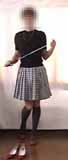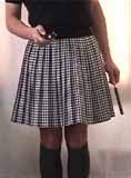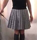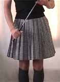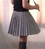 プリーツミニスカートと笞という柔らかさと硬さの組み合わせは、純子の眼の前にSMチックなイメージを次々に喚起します。