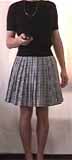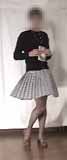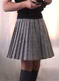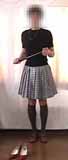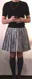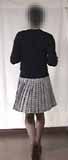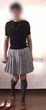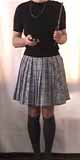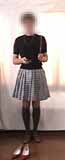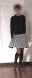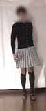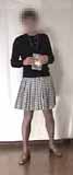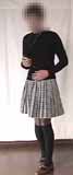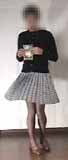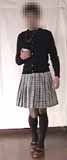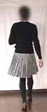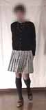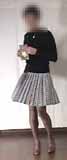 純子の定番スカートです。黒のカシミアアンサンブル、ダークブラウンのストッキングに黒のハイソックス...