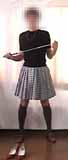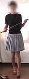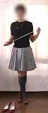 指示棒を後ろに持ってスカートの上からお尻に当ててみました。スカートが押さえられてヒップがいやでも目立ちます。