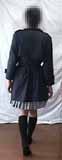同じプリーツスカートに、紺色のトレンチコートを合わせます。上のとシルエットは同じです。