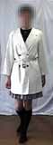 白っぽいクリーム色のトレンチコート。羽織るだけ、あるいは、ベルトをせずにボタンだけ、っていうよりは、