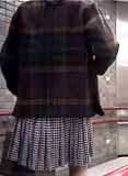 いろいろなコートをギンガムのプリーツミニスカートと合わせて楽しみました。