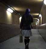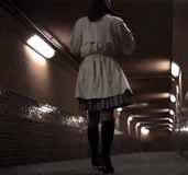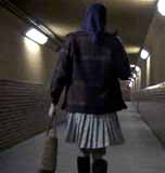 こんな薄暗い夜の地下通路を、プリーツミニスカートで、その裾広がりを強調した女性が一人で何を?
